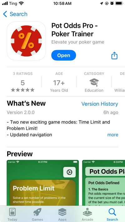 Try the app for yourself! Check out the App Store page link below or look up "Pot Odds Pro" in the App Store on any iPhone running iOS 17.2 or later. Also, take a look at the app's FAQ and Privacy Policy below!