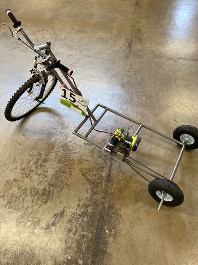 After assembling all components, our bike came out to weigh 41 lbs, well under the 50 lb limit. During the competition we managed to haul a load of 947 lbs up the 15% grade hill, far exceeding our expectations. This made our vehicle the strongest pound-for-pound contender in the two sections competing that semester. We also came in under-budget, with final costs equaling $197. Overall, we claimed second place for the heaviest load carried, being out-hauled only by a team that exceeded both the weight and budget requirements.